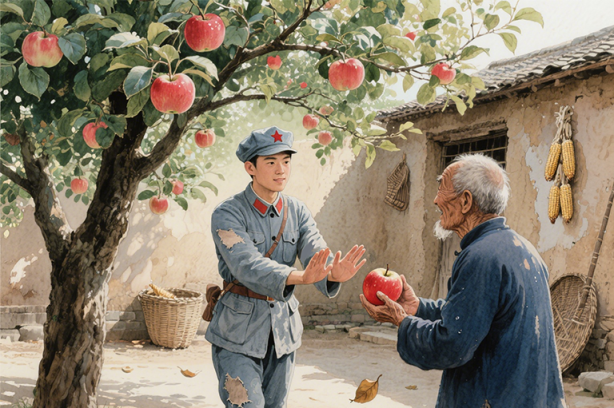 1937年,山西省万荣县周王村红枣丰收。村民听说有军队要路过村子,慌了神。9月下旬的一天,八路军排着长队在沟边过了两天,却没有摘树上一颗枣,连掉在地上的也没人捡。村民第一次见到了不拿百姓东西的军队,见识到了八路军严明的纪律。